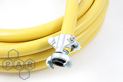 6354 - Compressor hose assemblies are equipped with European compressor claw couplings and safety clamps that include nyloc nuts at each end. The hose is manufactured from a PVC tube with a TPE outer lining and is reinforced with a denier polyester fibre. 6354 - compressor hose assemblies are available to buy online at PAR Direct by clicking the above link.